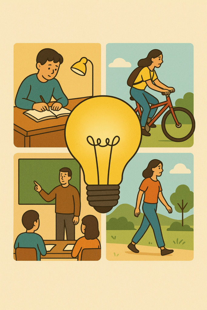 Energie begegnet mir überall – vom Aufstehen bis zum Schlafengehen. Morgens brauche ich sie, um wach zu werden, ob durch ein Frühstück oder den Weg zur Schule. Auf dem Weg dorthin steckt Energie im Bus, im Fahrrad oder in meinen eigenen Schritten. In der Schule sorgt sie dafür, dass die Computer laufen, das Licht brennt und wir lernen können. Am Nachmittag nutze ich Energie beim Sport, wenn ich mich bewege und Kraft einsetze. Gleichzeitig denke ich an die Zukunft: Energie muss nachhaltig sein, damit wir sie weiter nutzen können, ohne die Natur zu zerstören.